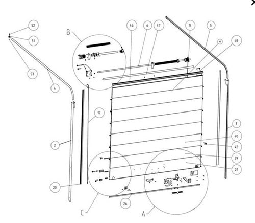 Zastosowanie: Profil montowany bezpośrednio pomiędzy poszczególnymi panelami (lamelami) rolety drzwi samochodowych.