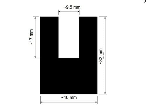 Czarna osłona krawędzi ~9,5 mm z litego EPDM. Profil gumowy nie jest zbrojony.
