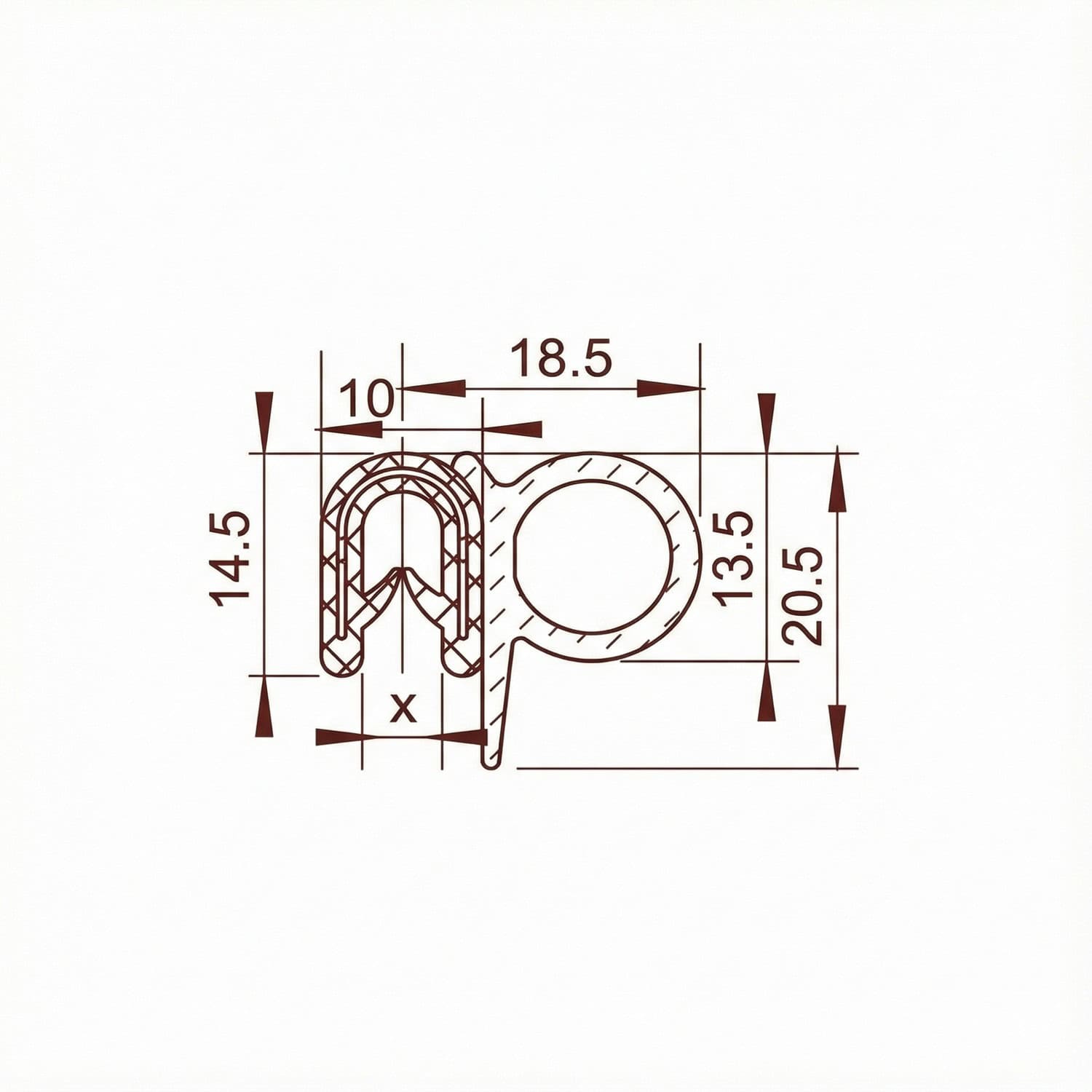 Część uszczelniająca profili wykonana jest z gumy piankowej, natomiast powierzchnia zacisku składa się z gumy miękkiej ze stalowym rdzeniem do wpinania.