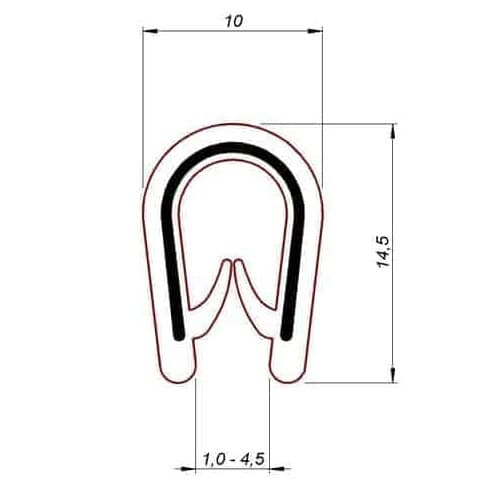 Uszczelka krawędziowa, zaciskowa, zacisk zbrojony czarny. Profile wpinane posiadają właściwości profili chroniących krawędzie i profili uszczelniających.