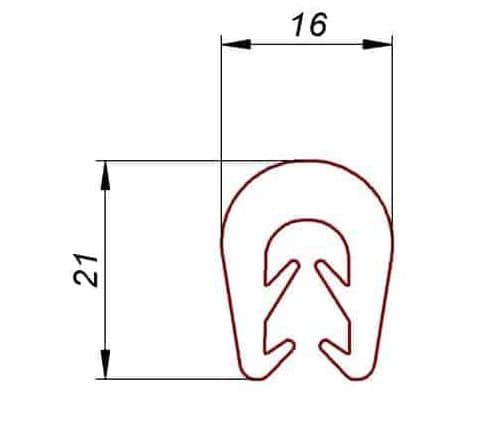 Uszczelka krawędziowa, zaciskowa EPDM , komórkowy czarny, zacisk niezbrojony EPDM czarny. Zacisk EPDM sztywny, natomiast warga miękka. Profile wpinane posiadają właściwości profili chroniących krawędzie i profili uszczelniających. Powierzchnia uszczelniająca tych profili wykonana jest z gumy piankowej, natomiast powierzchnia zacisku składa się z gumy twardej bez stalowego rdzenia do wpinania. Dwa rodzaje tworzyw są ze sobą spajane w trakcie wytłaczania podczas wulkanizacji.