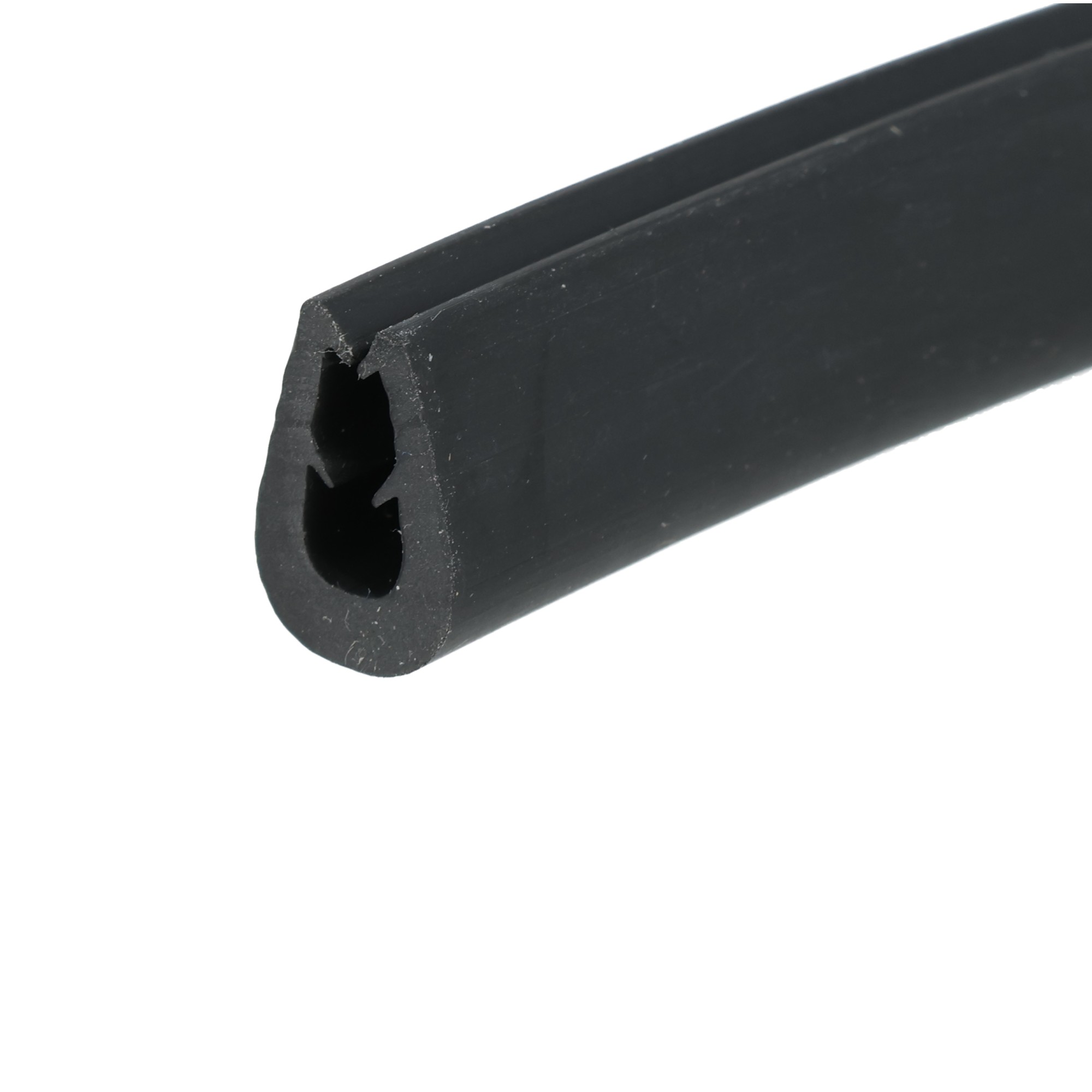 Uszczelka krawędziowa, zaciskowa EPDM , komórkowy czarny, zacisk niezbrojony EPDM czarny. Zacisk EPDM sztywny, natomiast warga miękka. Profile wpinane posiadają właściwości profili chroniących krawędzie i profili uszczelniających. Powierzchnia uszczelniająca tych profili wykonana jest z gumy piankowej, natomiast powierzchnia zacisku składa się z gumy twardej bez stalowego rdzenia do wpinania. Dwa rodzaje tworzyw są ze sobą spajane w trakcie wytłaczania podczas wulkanizacji.