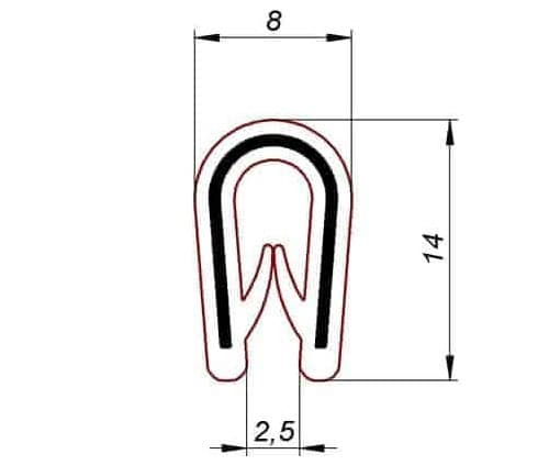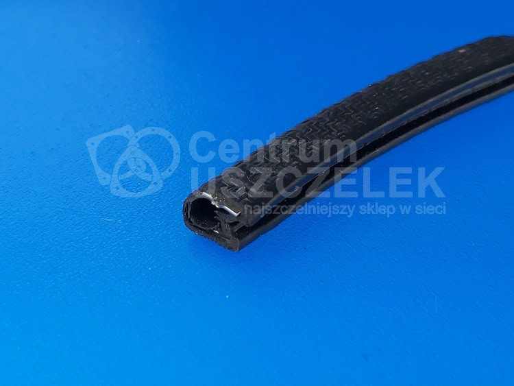 Uszczelka krawędziowa, zaciskowa, zacisk zbrojony czarny. Profile wpinane posiadają właściwości profili chroniących krawędzie i profili uszczelniających.