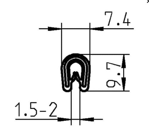 Osłona krawędzi 1-2 mm wykonana z ognioodpornego neoprenu zgodnie z certyfikatem EN 45545-2. Osłona krawędzi stosowana m.in.: w kolejnictwie.