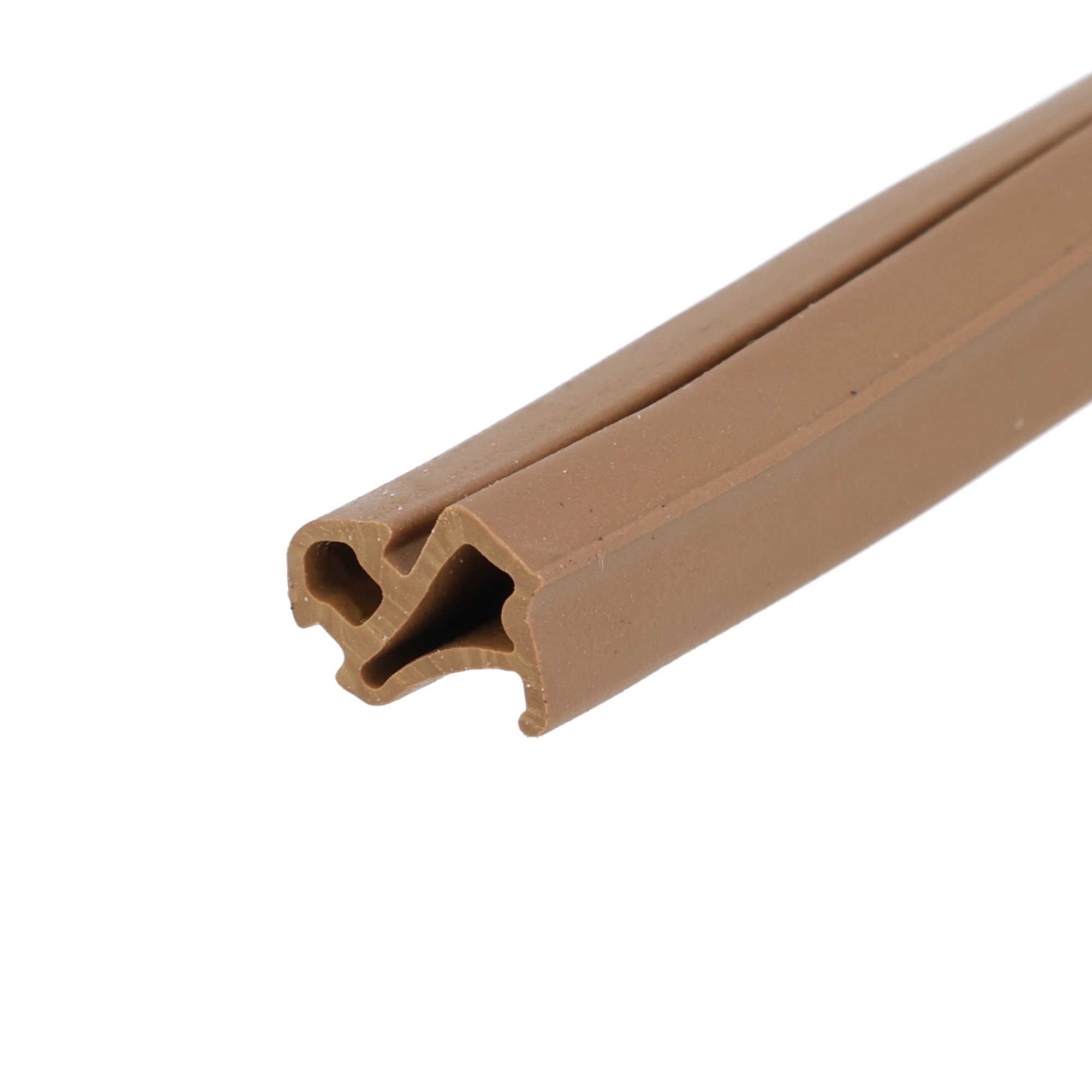 Uszczelka montowana jest w oknach PCV na profilu VEKA. Profil gumowy okienny w kolorze brązowym, oporowa.
