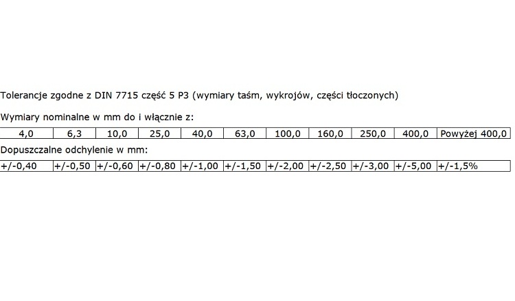 – od 10mm grubości odbiegająca tolerancja grubości: +/- 10%