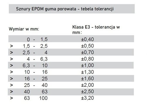 gumowa uszczelka epdm o profilu okrągłym i średnicy 2,5 mm. profil epdm komórkowy oring fi 2,5 mm czarny tolerancja zgodna z normą din iso 3302-1 e3.