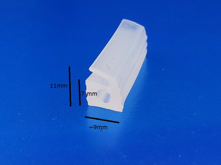 Profil silikonowy transparentny wciskany, przecinek. Materiał transparentny silikon termiczny.