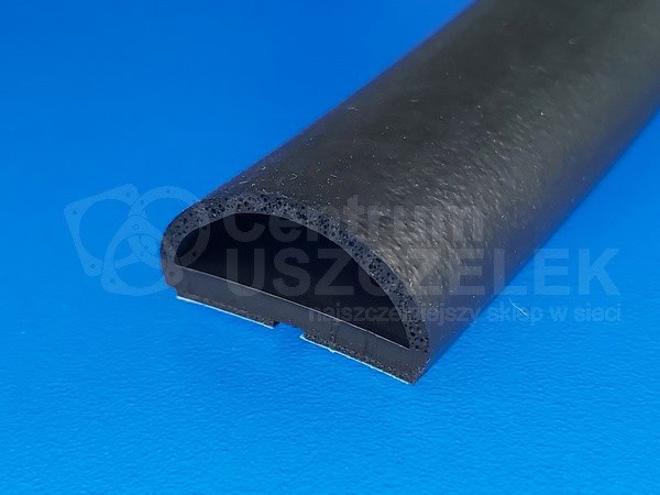 Uszczelka gumowa EPDM samoprzylepna, typ D, zbrojona.  Profil samoprzylepny typ D kolor czarny, podwójnej twardości – Shore 95 A podstawa, góra miękkie EPDM.