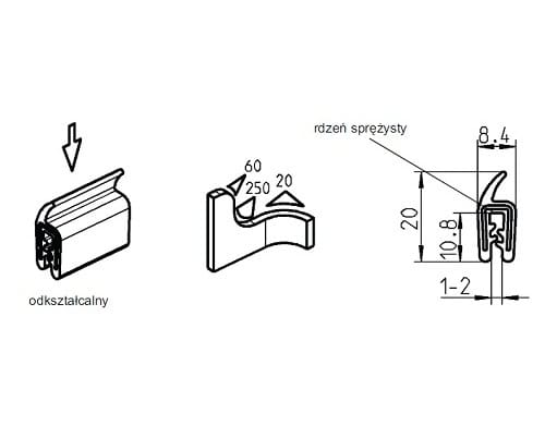 profile wpinane posiadają właściwości profili chroniących krawędzie i profili uszczelniających. część uszczelniająca profili wykonana jest z gumy, natomiast powierzchnia zacisku składa się z gumy miękkiej ze stalowym rdzeniem do wpinania. dwa rodzaje tworzyw są ze sobą spajane w trakcie wytłaczania w procesie wulkanizacji.