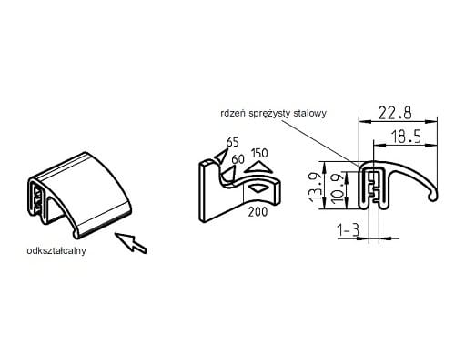 profile wpinane posiadają właściwości profili chroniących krawędzie i profili uszczelniających. część uszczelniająca profili wykonana jest z gumy, natomiast powierzchnia zacisku składa się z gumy miękkiej ze stalowym rdzeniem do wpinania. dwa rodzaje tworzyw są ze sobą spajane w trakcie wytłaczania w procesie wulkanizacji.