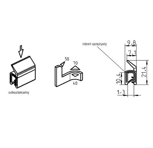 profile wpinane posiadają właściwości profili chroniących krawędzie i profili uszczelniających. część uszczelniająca profili wykonana jest z gumy epdm, natomiast powierzchnia zacisku składa się  z gumy miękkiej ze stalowym rdzeniem do wpinania. dwa rodzaje tworzyw są ze sobą spajane w trakcie wytłaczania w procesie wulkanizacji.