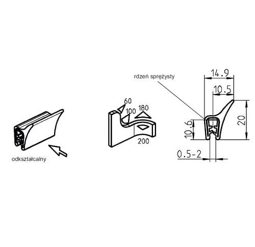 materiał uszczelki krawędziowej to czarny epdm Shore A 60° +/- 5