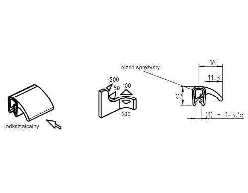 materiał uszczelki krawędziowej to czarny perbunan nbr shore a 60° +/- 5 shore a