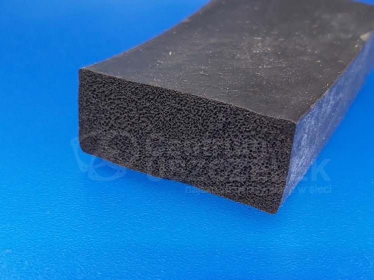 Taśma z gumy porowatej o przekroju prostokoąta. Grubość uszczelki gumowej 30 mm szerokość 15 mm. Czarna guma porowata 15×30 mm.