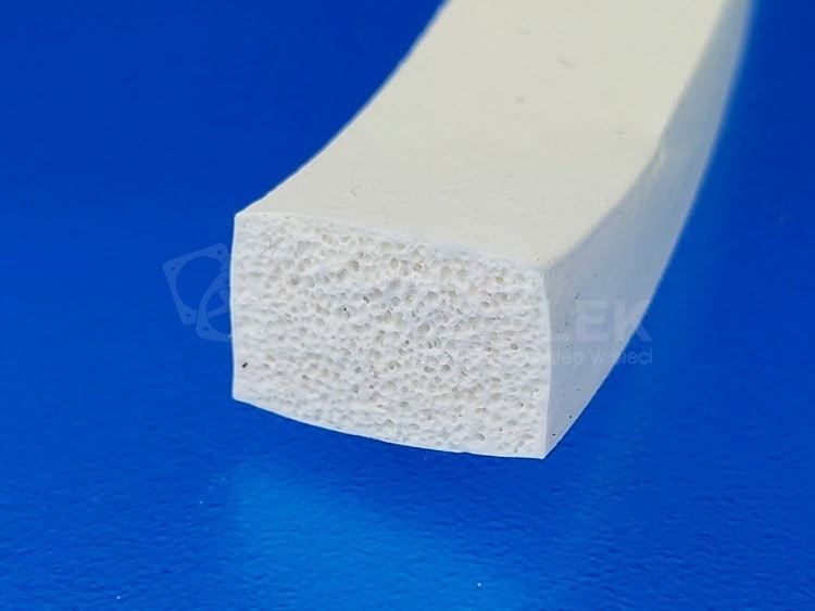 Taśma z miękkiego silikonu o przekroju prostokąta. Grubość uszczelki gumowej 15 mm szerokość 18 mm. Biały, spieniony silikon 15×18 mm wykonany z miękkiego silikonu. Twardość 40 Sha wytrzymałość do 200 stopni Celsjusza.