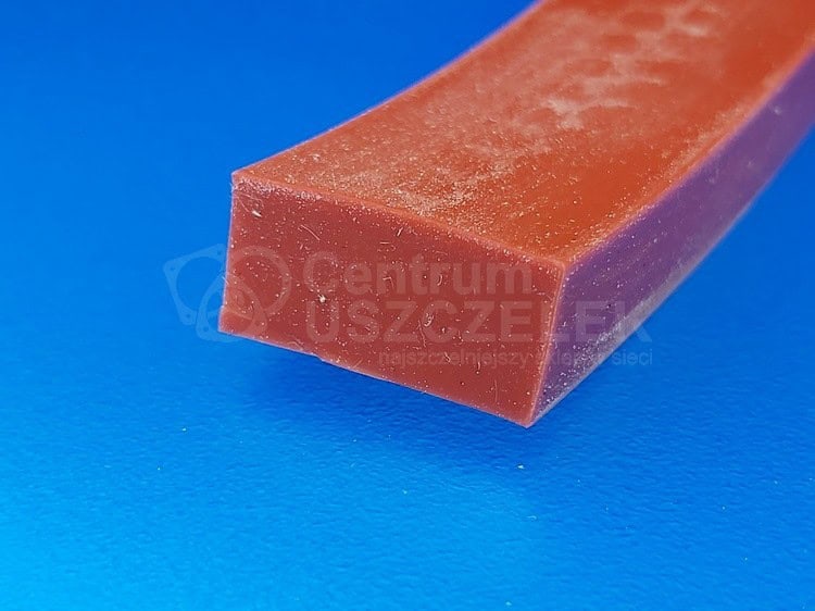Profil silikonowy o przekroju prostokąta 8 x 17 mm. Twardość 60º Shora. Odporność termiczna 315º Celsjusza. Atest na kontakt z żywnością.