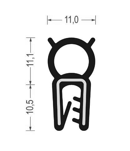 Profile wpinane posiadają właściwości profili chroniących krawędzie i profili uszczelniających. Twardość według Shora 60 +/-5. Tolerancja według DIN 3302-1 E2. Powierzchnia zacisku wykonana została z szarego silikonu z metalowym wkładem.