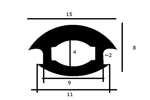 Gumowy profil omega 8x11x15 mm plastyfikowane PVC.