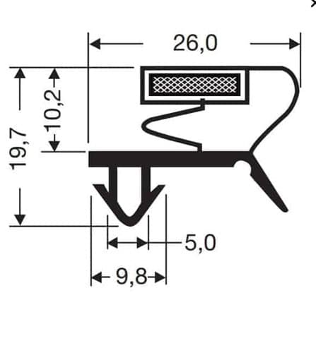 Uszczelka czarna do drzwi urządzeń chłodniczych, 32-162