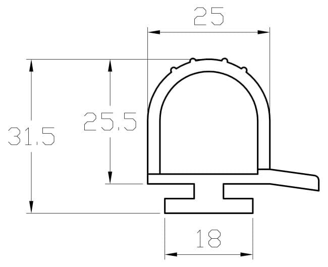 Uszczelka gumowa drzwi chłodniczych montowana w części bocznej. Uszczelka chłodnicza wsuwana w obramowanie płata drzwiowego. Profil gumowy dwuskładnikowy wykonany z EPDM. Brzuszek wykonany z spienionego EPDM, elastyczny, natomiast podstawa zrobiona z litego EPDM. Uszczelka obwiedniowa korytkowa wymiary 25 x 25,5 mm.