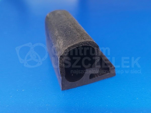 Uszczelka gumowa drzwi chłodniczych montowana w części bocznej. Uszczelka chłodnicza montowana za pomocą płaskownika 10×3 mm. Profil gumowy dwuskładnikowy wykonany z EPDM. Brzuszek wykonany z spienionego EPDM, elastyczny, natomiast podstawa zrobiona z litego EPDM. Kolor czarny,