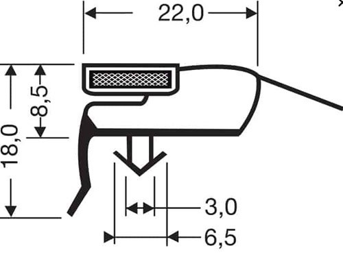 Uszczelka z magnesem L-255 cm montowana w urządzeniach chłodniczych.