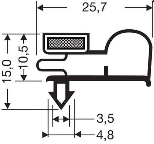 Uszczelka z magnesem L-260 cm montowana w urządzeniach chłodniczych.