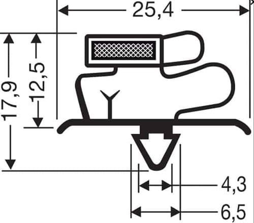 Uszczelka z magnesem L-260cm montowana w urządzeniach chłodniczych.