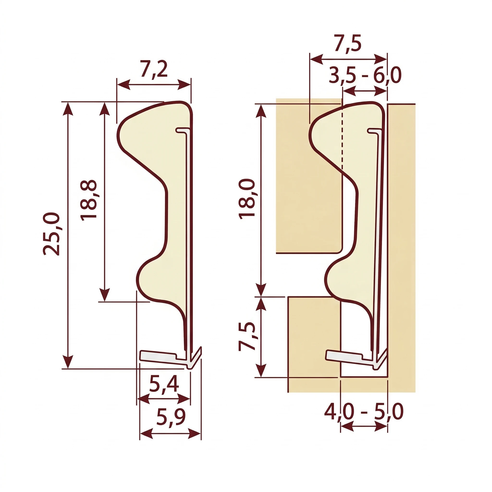 Uszczelka do stosowania w oknach o głębokości rowka 7,5 mm, szczelinie 4-5 mm i przyldze 18 mm