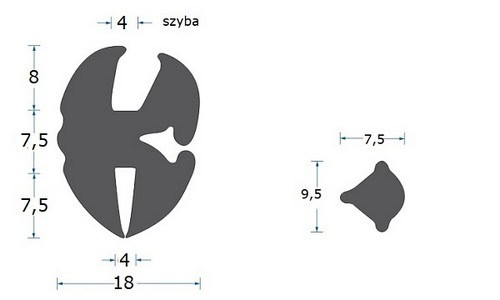 Profil mocujący z czarnego EPDM o twardości Shore A 75° +/- 5 z wypełniaczem z czarnego EPDM o twardości Shore A 85° +/- 5