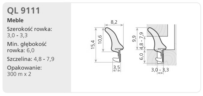 Uszczelki Q-Lon z pianki poliuretanowej: do aranżacji wnętrz, drzwi wewnętrznych oraz mebli. Uszczelki do drzwi wewnętrznych oraz do drzwi przesuwnych w meblach są stosowane jako dodatkowa izolacja, która zapobiega wnikaniu powietrza, kurzu i innych zanieczyszczeń w szczeliny. Produkt mocuje się do ramy drzwi, co tworzy uszczelnienie, gdy drzwi są zamknięte. Badania i wynikiOdkształcenie trwałe po ściskaniu: < 15% po 1 godzinie rozluźnienia 50% kompresji w 70 °C przez 24 godziny. (DIN 53572)Siła kompresji około 15 N przy 25% kompresji na 100 mm, < 10 N dla profli wargowychZbadany zakres temperatur: -60 °C do +70 °CPrzewodnictwo cieplne: 0,041 W/mK w 0 ºCDożywotnie parametry brak zmian związanych z długością i częściową przenikalnością łączeńStosowanie z farbami: Bez przylegania, utwardzania lub utraty koloruOdporność na warunki atmosferyczne: przetestowana na okres do 20 latKolor biały.