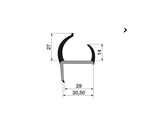Uszczelka drzwi 29 – 30,50 mm długość L-5000mm. Listwa odpowiednia do zabudów samochodowych typu izoterma, kontener, chłodnia, furgon.
