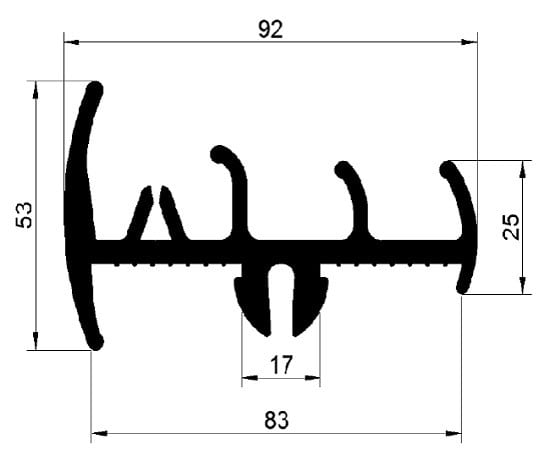 Profil gumowy stosowany, jako uszczelnienie do drzwi tylnych chłodni naczepy np.: Schmitz. Uszczelka gumowa drzwi tylnych naczepy chłodni uniwersalna w kolorze czarnym.