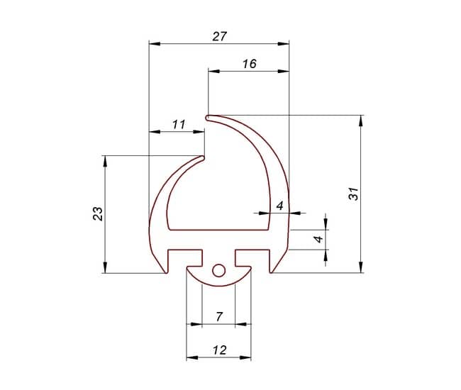 Uszczelka drzwi gumowa wciskana w profil aluminiowy, 038933
