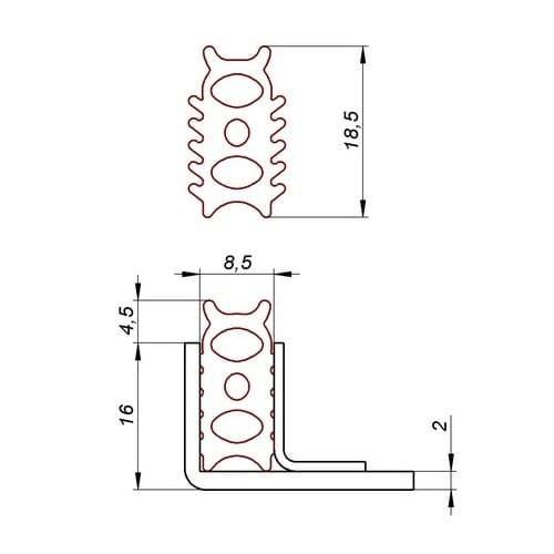szerokość rowka nie może być mniejsza niż 8.6 mm. najlepsze uszczelnienie uzyskuje się, gdy uszczelka może się swobodnie przesuwać w rowku i jest przytrzymywana za pomocą 2″uch” środkowych.
