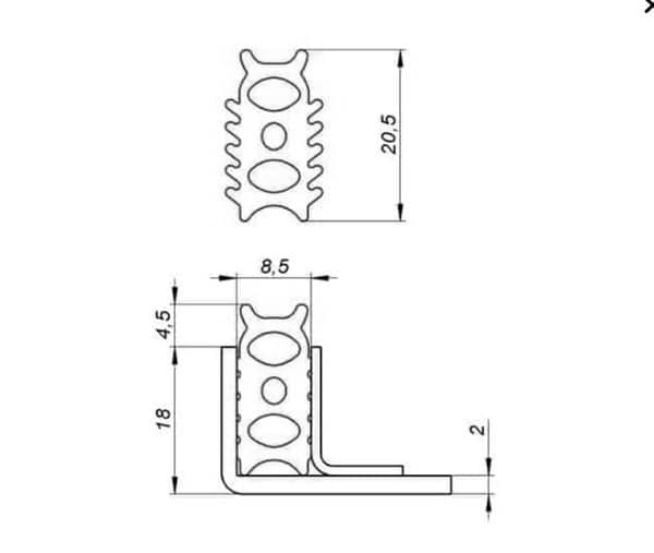 szerokość rowka nie może być mniejsza niż 8.6 mm. najlepsze uszczelnienie uzyskuje się, gdy uszczelka może się swobodnie przesuwać w rowku i jest przytrzymywana za pomocą 2″uch” środkowych.