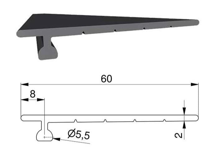 Górna uszczelka do bramy garażowej 60 mm. Profil gumowy wykonany z EPDM. Podstawa mocująca fi 5,5 mm.