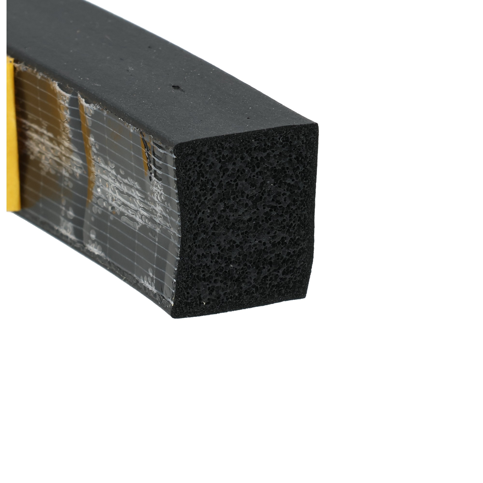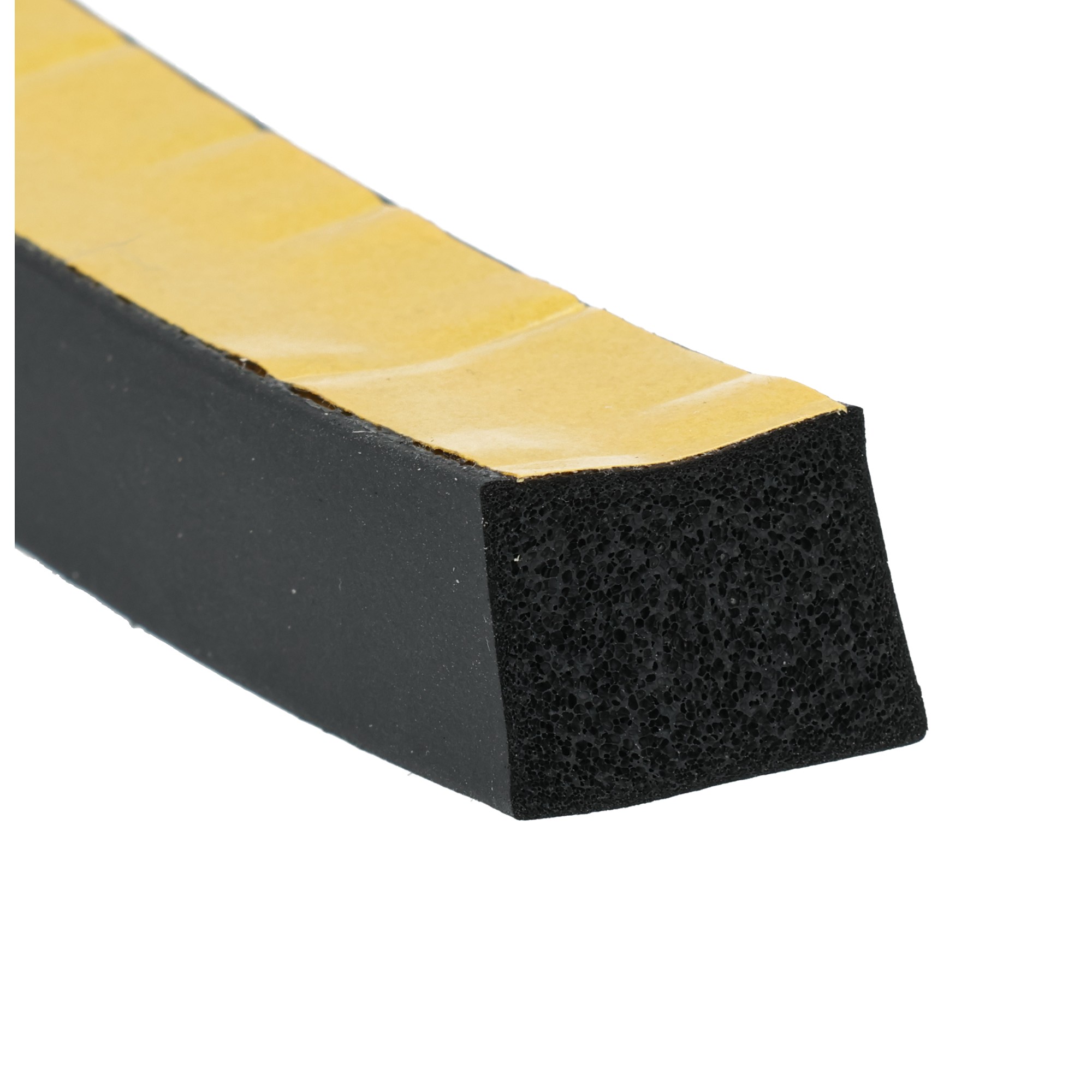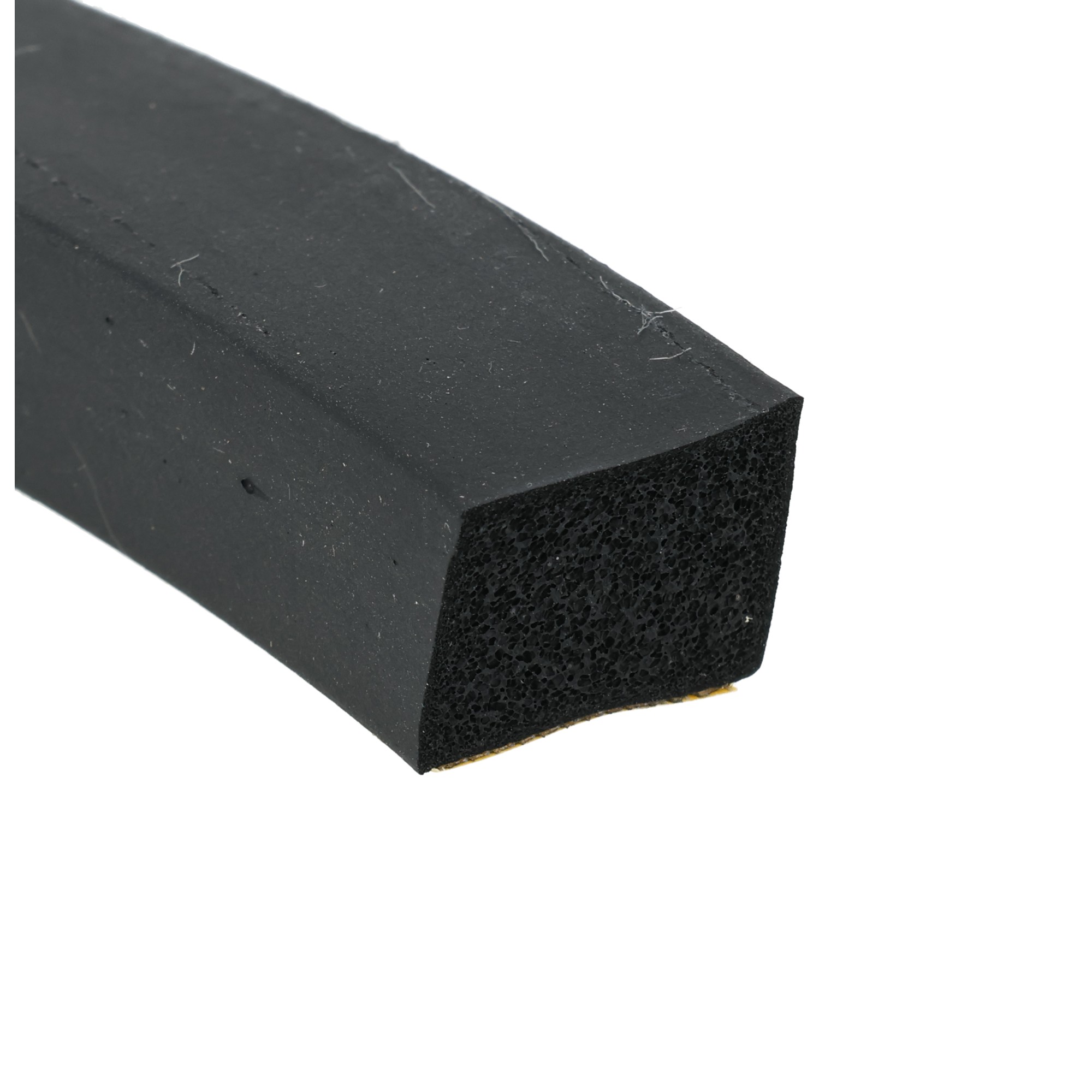 Profile z gumy piankowej CR z przewagą zamkniętych komórek, samoprzylepne 15×20 mm. materiał głównie guma piankowa CR o zamkniętych komórkach, kolor czarny, gęstość przeważnie 0,40 +/-0,1 g/cm³, jednostronnie samoprzylepna, jako pomoc montażowa powierzchnia profil wytłaczany w sposób ciągły z zamkniętą powłoką zewnętrzną, z powłoką samoprzylepną i folią kryjącą na szerszym boku charakterystyka wszechstronne zastosowanie do uszczelniania i izolacji, szczególnie w przypadku stałych lub powtarzających się obciążeń ciśnieniowych, przy ściśnięciu do 30%, trwale bardzo dobra sprężystość, dobra odporność na warunki atmosferyczne, starzenie i liczne chemikalia, np. chemikalia. B. wiele lekkich kwasów i zasad, dobra odporność na oleje i tłuszcze roślinne i zwierzęce, dobra lub umiarkowana odporność na oleje i tłuszcze mineralne tolerancje wymiarowe zgodnie z DIN ISO 3302-1 E3