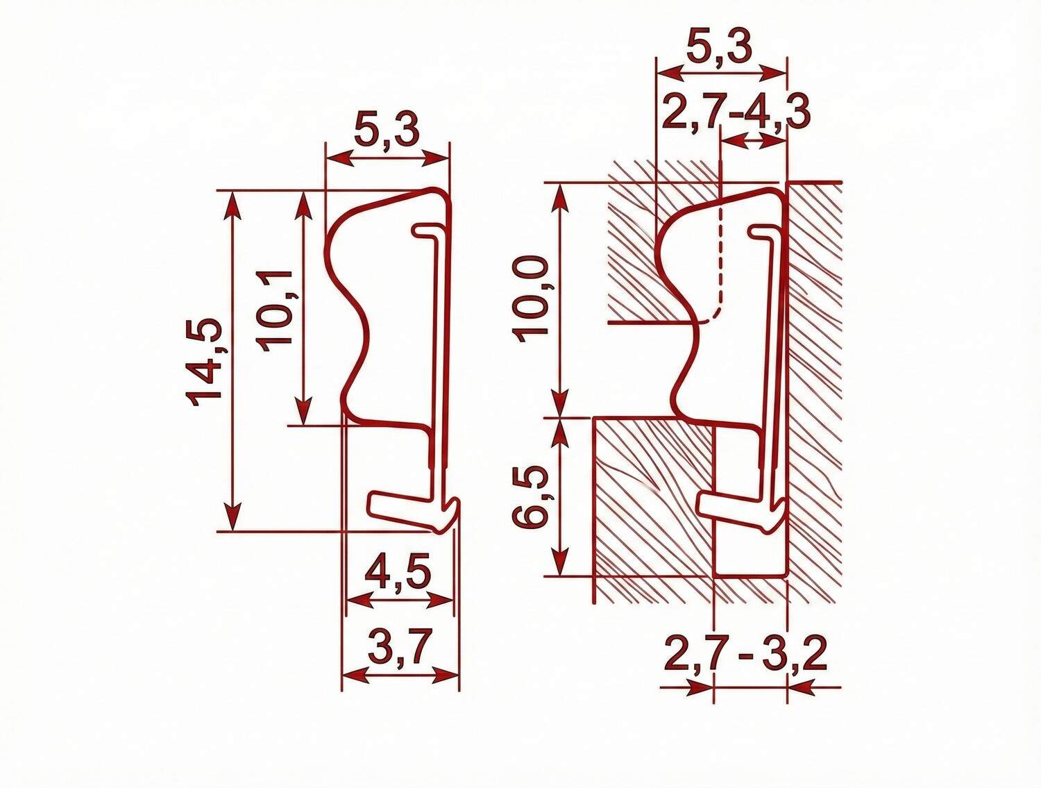 - siła kompresji około 15 N przy 25% kompresji na 100 mm, < 10 N dla profili wargowych