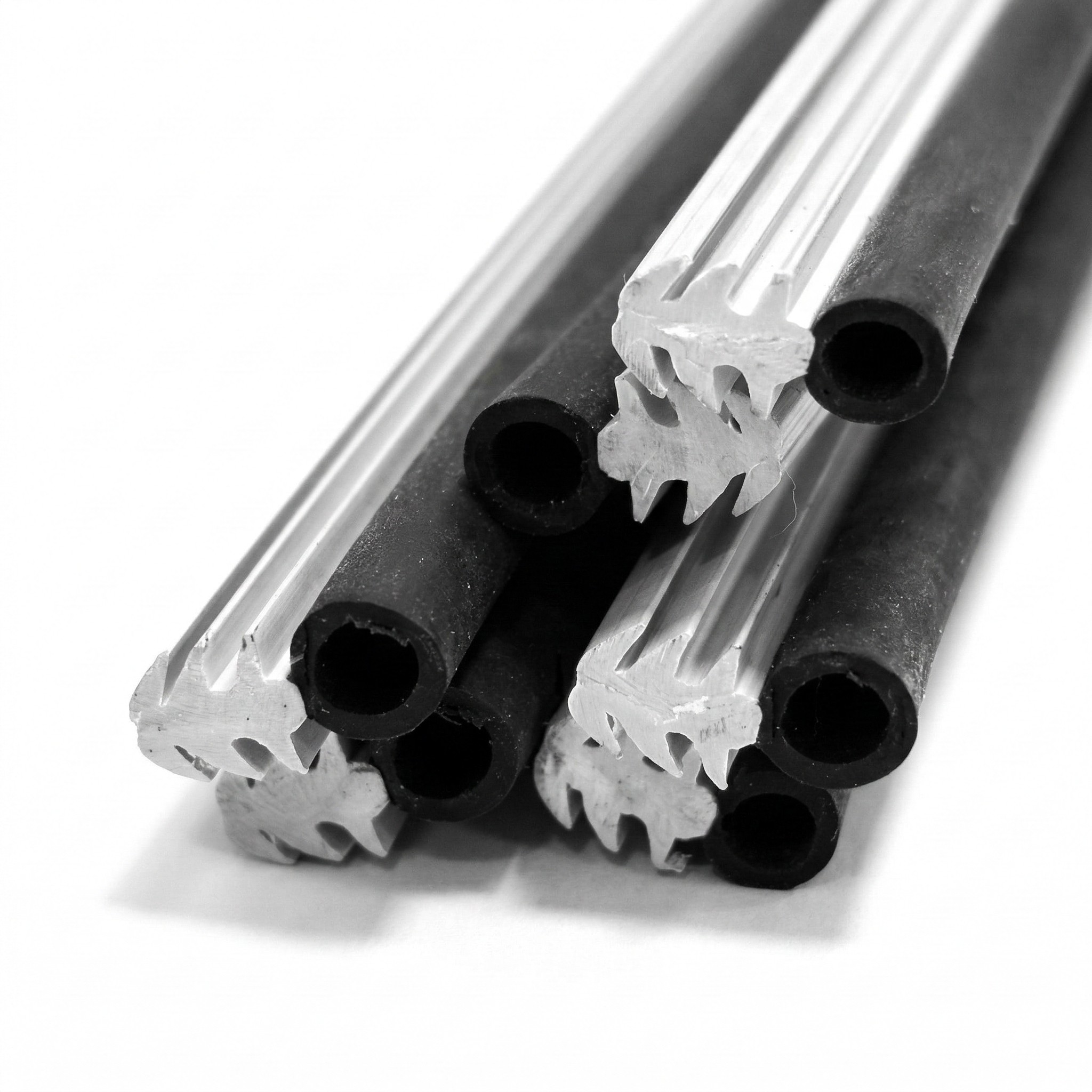 Hybrydowa konstrukcja: Połączenie miękkiej gumowej rurki ze sztywnym elementem mocującym.