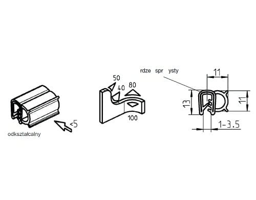 materiał: czarna guma porowata epdm – profil mocujący pvc shore  a 65° +/- 5