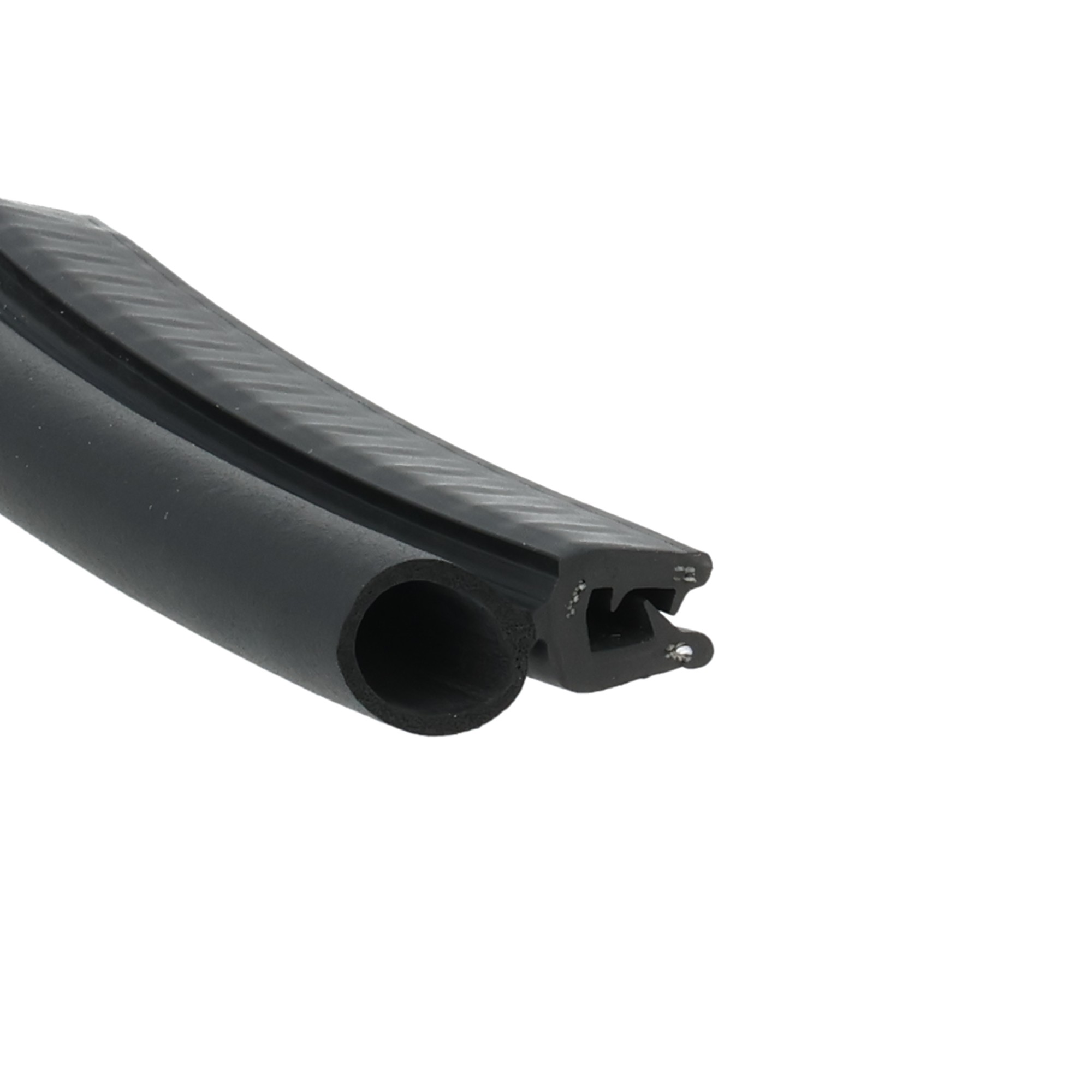 profile wpinane posiadają właściwości profili chroniących krawędzie i profili uszczelniających. część uszczelniająca profili wykonana jest z gumy piankowej, natomiast powierzchnia zacisku składa się z gumy miękkiej ze stalowym rdzeniem do wpinania. dwa rodzaje tworzyw są ze sobą spajane w trakcie wytłaczania w procesie wulkanizacji.