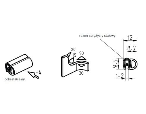 Część uszczelniająca profili wykonana jest z gumy piankowej, natomiast powierzchnia zacisku składa się z gumy miękkiej ze stalowym rdzeniem do wpinania.
