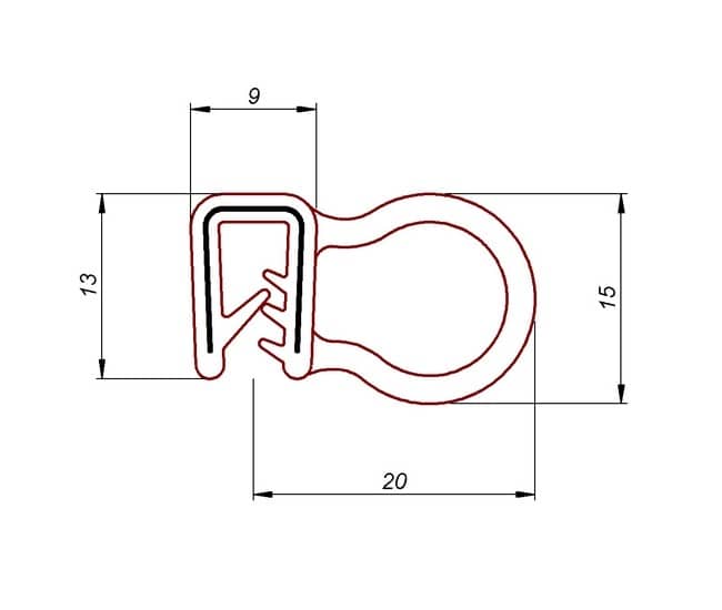 Profil wciskany samochodowy na krawędź od 1 do 3,5 mm. Uszczelka samochodowa samozaciskowa z uszczelnieniem bocznym z miękkiego EPDM i zaciskiem (kołnierz blaszany wewnątrz).