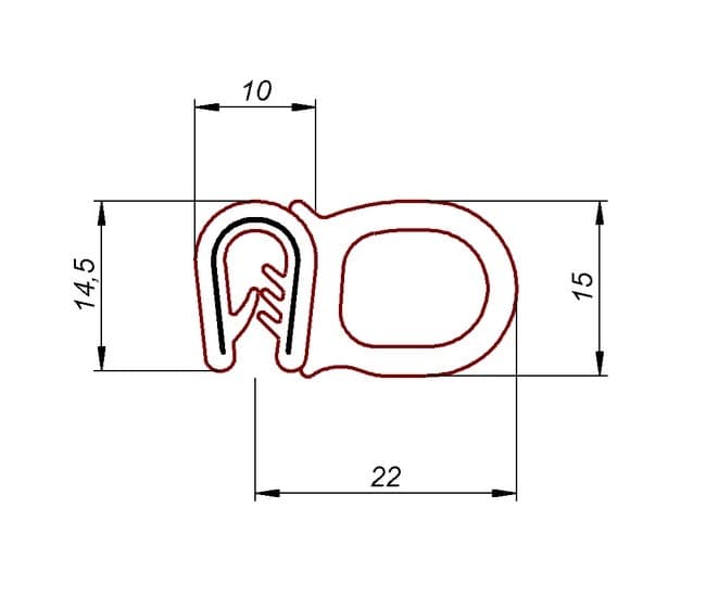 Profil wciskany samochodowy na krawędź od 1 do 3,5 mm. Uszczelka samochodowa samozaciskowa z uszczelnieniem bocznym z miękkiego EPDM i zaciskiem (kołnierz blaszany wewnątrz).