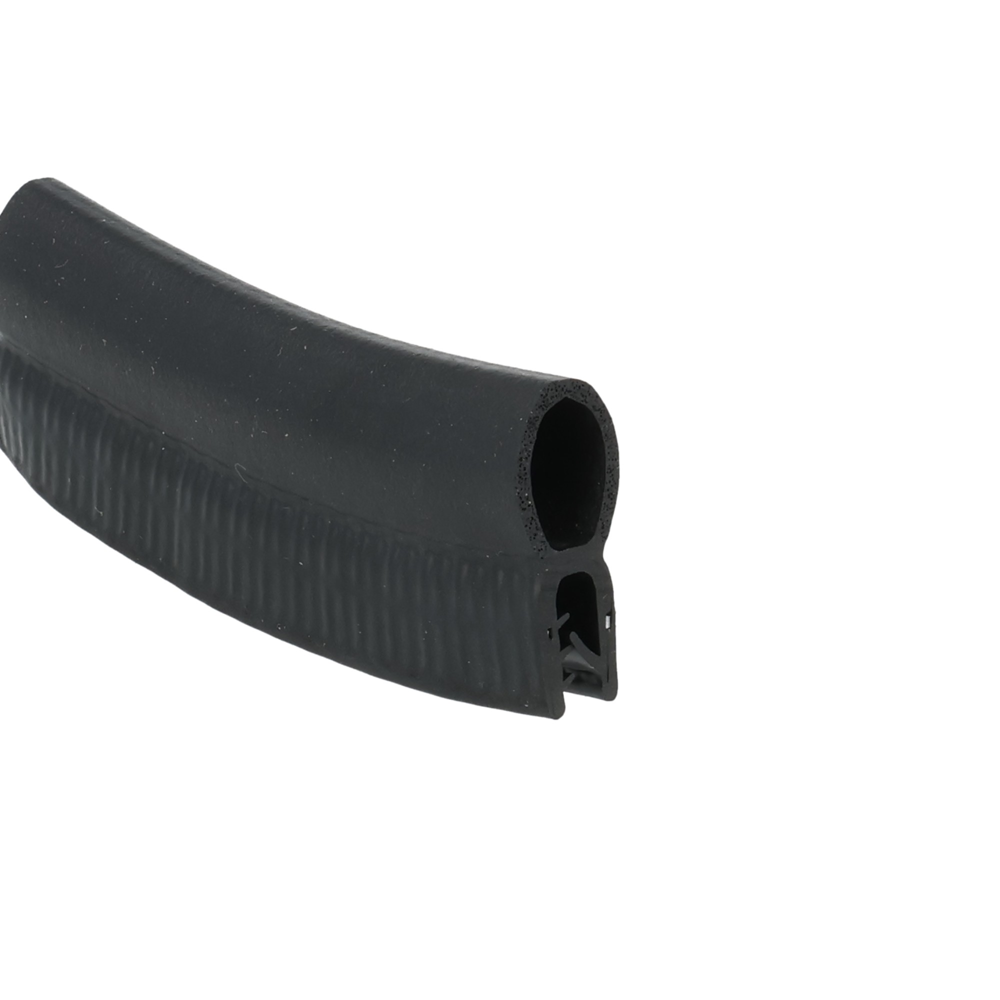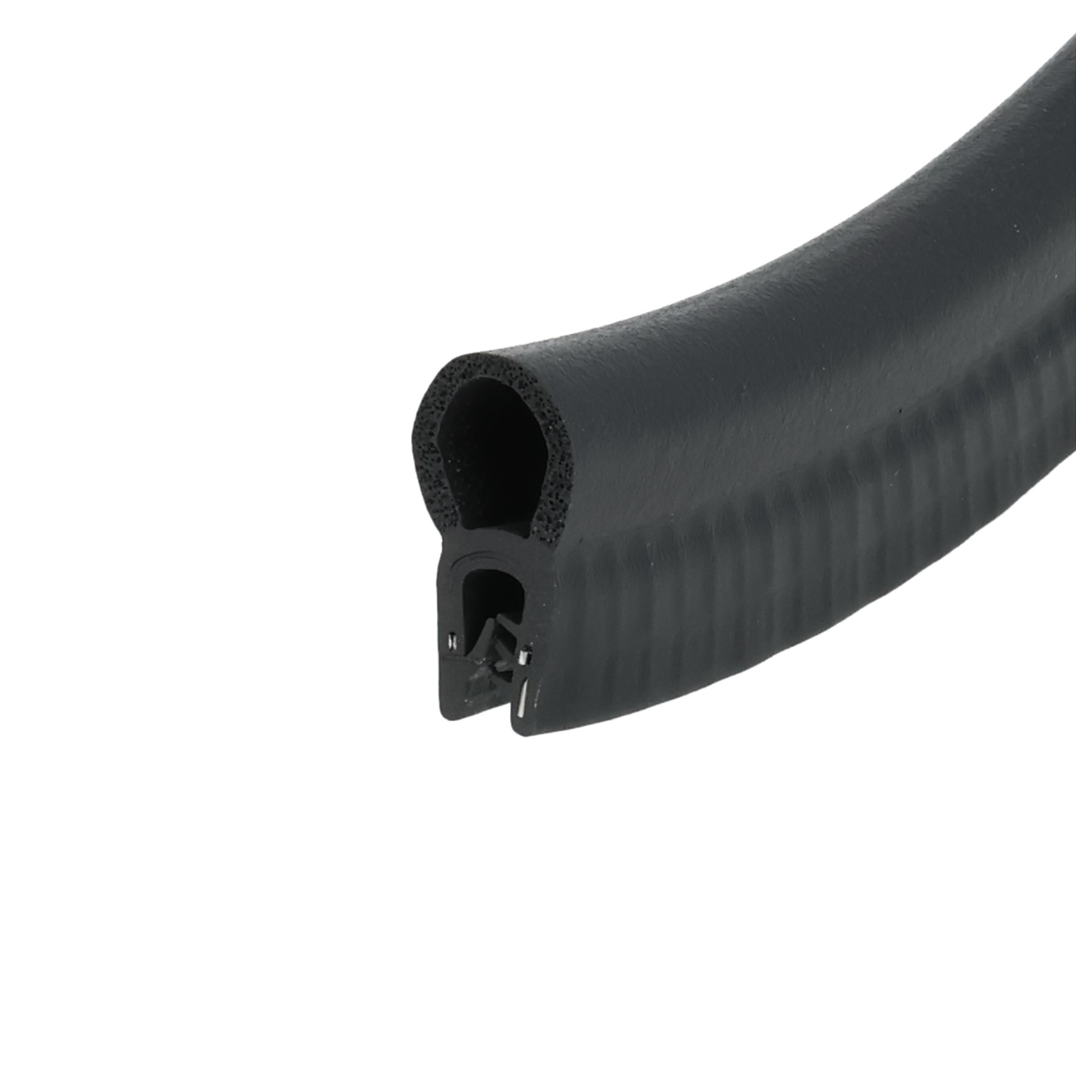 Zabezpieczenia krawędzi są używane, gdy stalowe krawędzie muszą być gładkie. Dodatkowa obróbka metalu nie jest potrzebna. Uzyskuje się efekt ozdobny. Profile chroniące krawędzie są elastyczne. Wpinana taśma stalowa w kształcie litery U z osłoną z PVC umożliwia trwałe osadzenie na metalowych krawędziach, nawet w przypadku łuków lub zagięć.Profil, osłona krawędzi jest w prosty sposób wciskany ręcznie w metalową krawędź, dzięki czemu nie trzeba używać narzędzi, klejów i złączy. Profile, taśmy chroniące krawędzie różnią się kształtem, rozmiarem, kolorem i powierzchnią w zależności od przeznaczenia.Materiał: uszczelka krawędziowa PVC w kolorze czarnym z rdzeniem ze stali sprężynowej połączona z bąblem gumowym EPDM. Profil gumowy odpowiedni do krawędzi 4-6 mm.