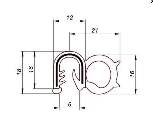 Uszczelka krawędziowa, zaciskowa EPDM komórkowy czarny, zacisk zbrojony EPDM czarny.