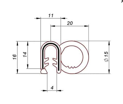 Uszczelka krawędziowa, zaciskowa EPDM komórkowy czarny, zacisk zbrojony EPDM czarny.