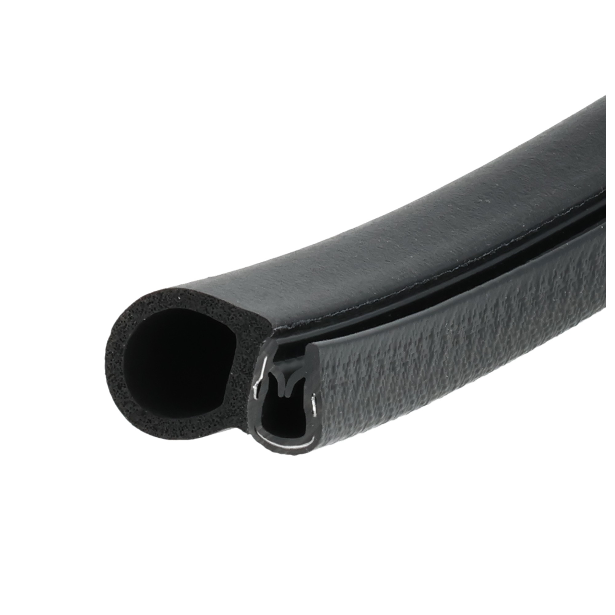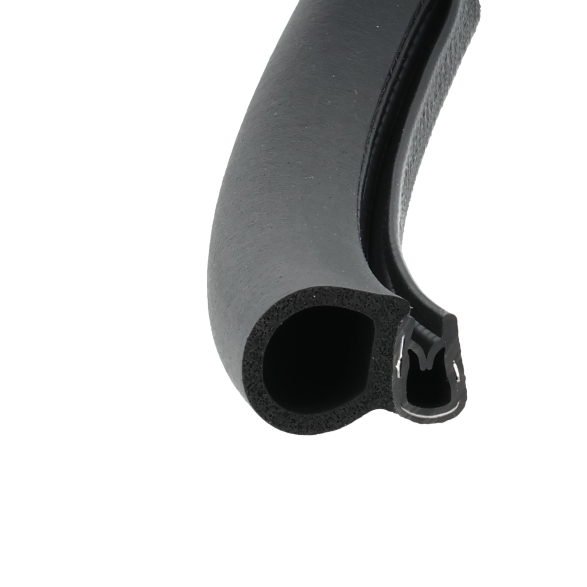 Uszczelka krawędziowa, zaciskowa EPDM   komórkowy czarny, zacisk zbrojony EPDM czarny.
